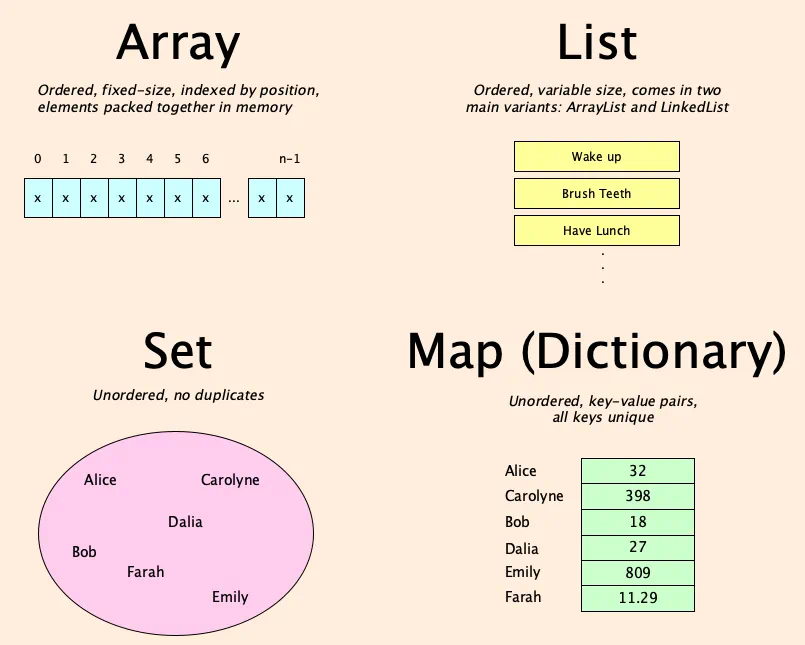 - Acceso rápido: Suelen estar implementados con tablas hash, lo que permite búsquedas eficientes.