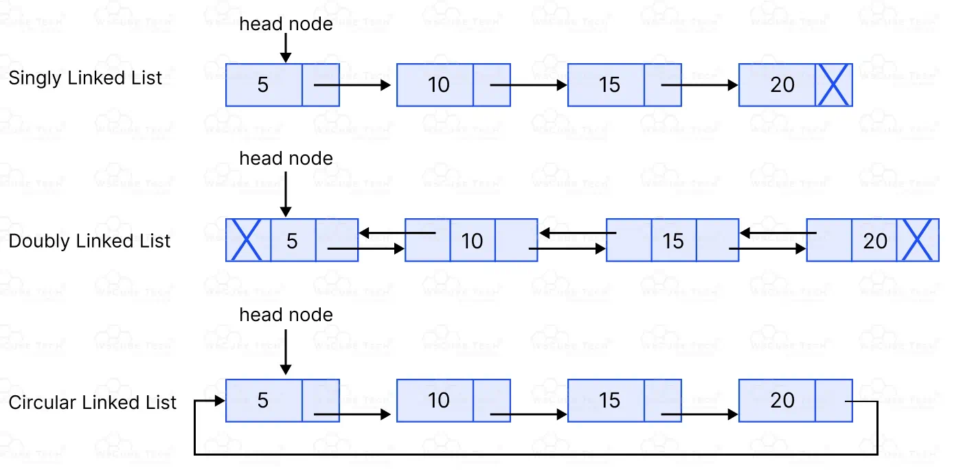 - Listas enlazadas (linked list): se pueden recorrer en un único sentido.