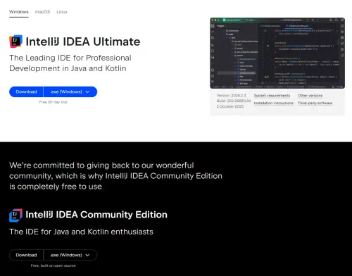 - Ultimate Edition: Versión de pago que incluye soporte para frameworks empresariales (Spring, Java EE, etc.) y otros lenguajes.